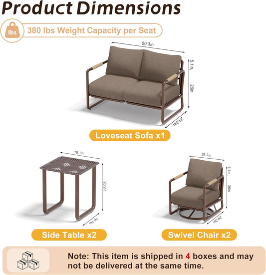 MBY Outdoor Aluminum Patio Furniture Set, Patio Conversation Sofa Set with Coffee Tables and Swivel Rocking Chairs, All Weather for Balcony, Garden