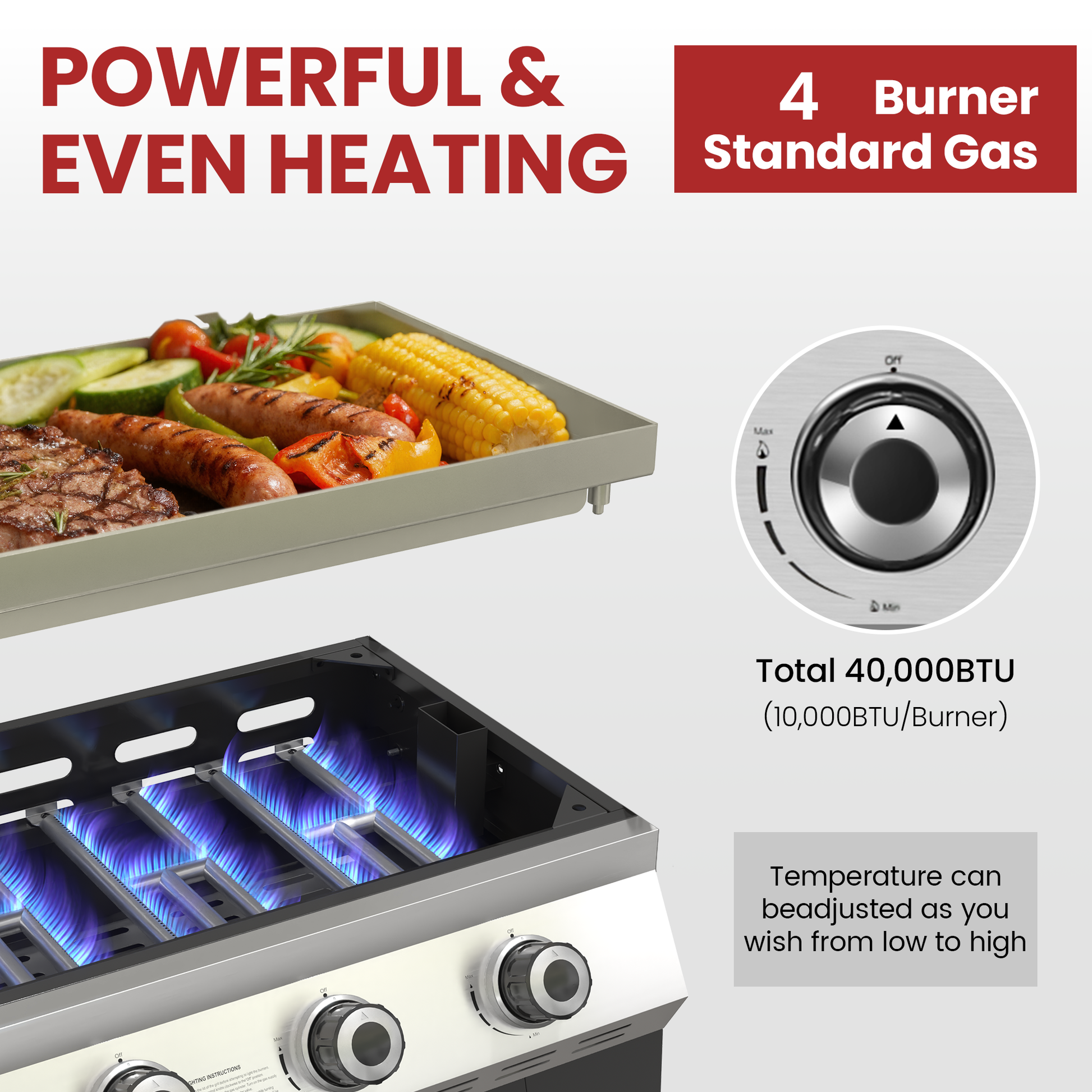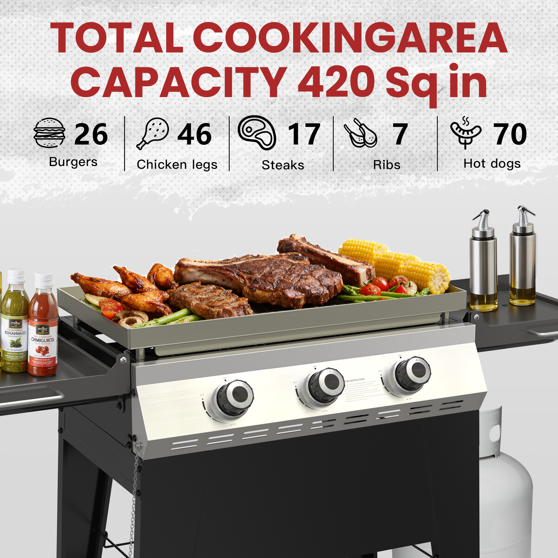 Three powerful burners and ample griddle space let you cook an entire meal at once—no waiting, no fuss.