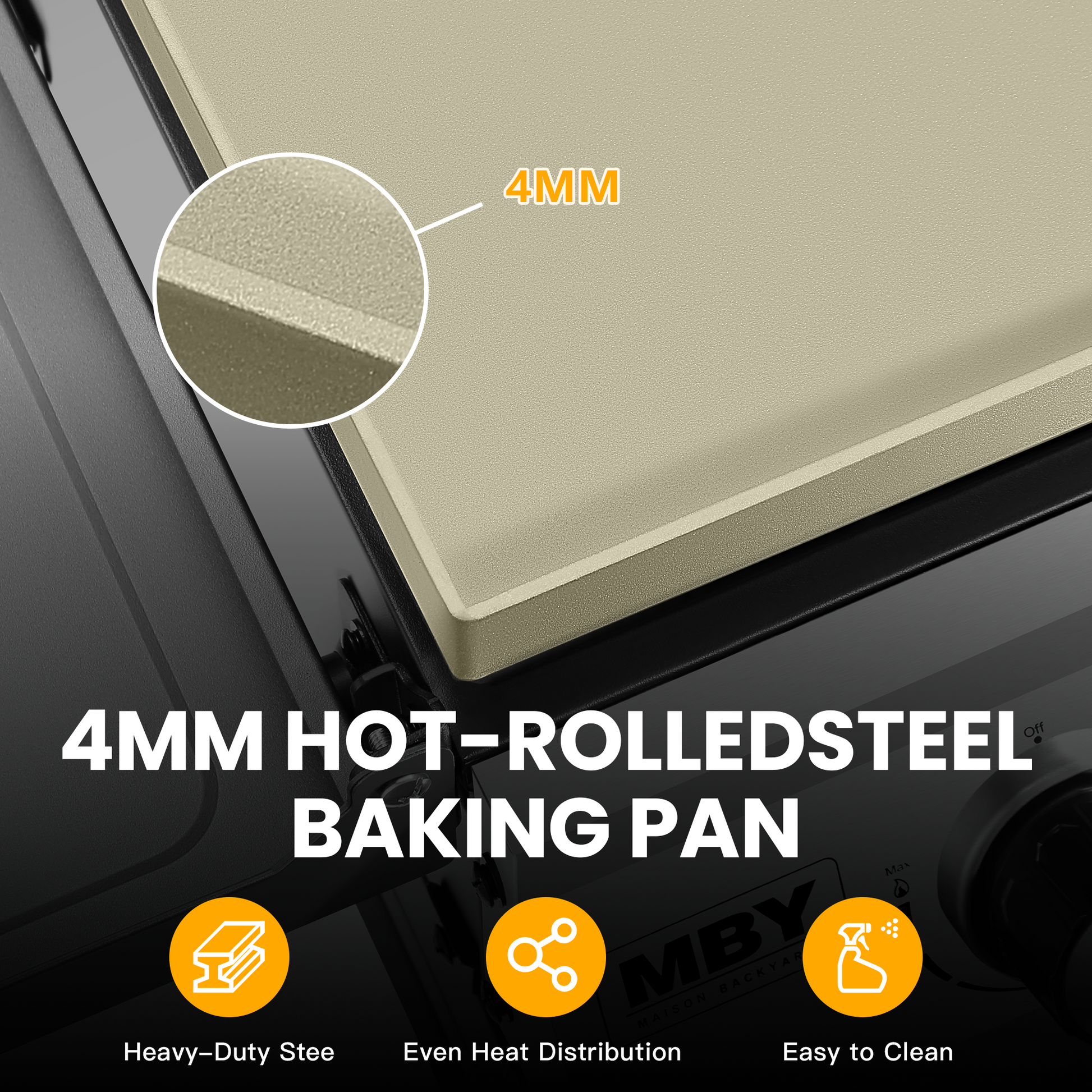 With 420 sq. inches of cooking space, this griddle effortlessly prepares up to 26 burgers at once—ideal for weekend gatherings or spontaneous cookouts. Three independently controlled burners let you master zone cooking: sizzle bacon on high heat while keeping pancakes warm nearby. Compact yet mighty, it’s designed for life on the go—equally at home on a campsite, balcony, or patio. No setup stress, no storage hassle. Just delicious, versatile cooking, wherever you are.
