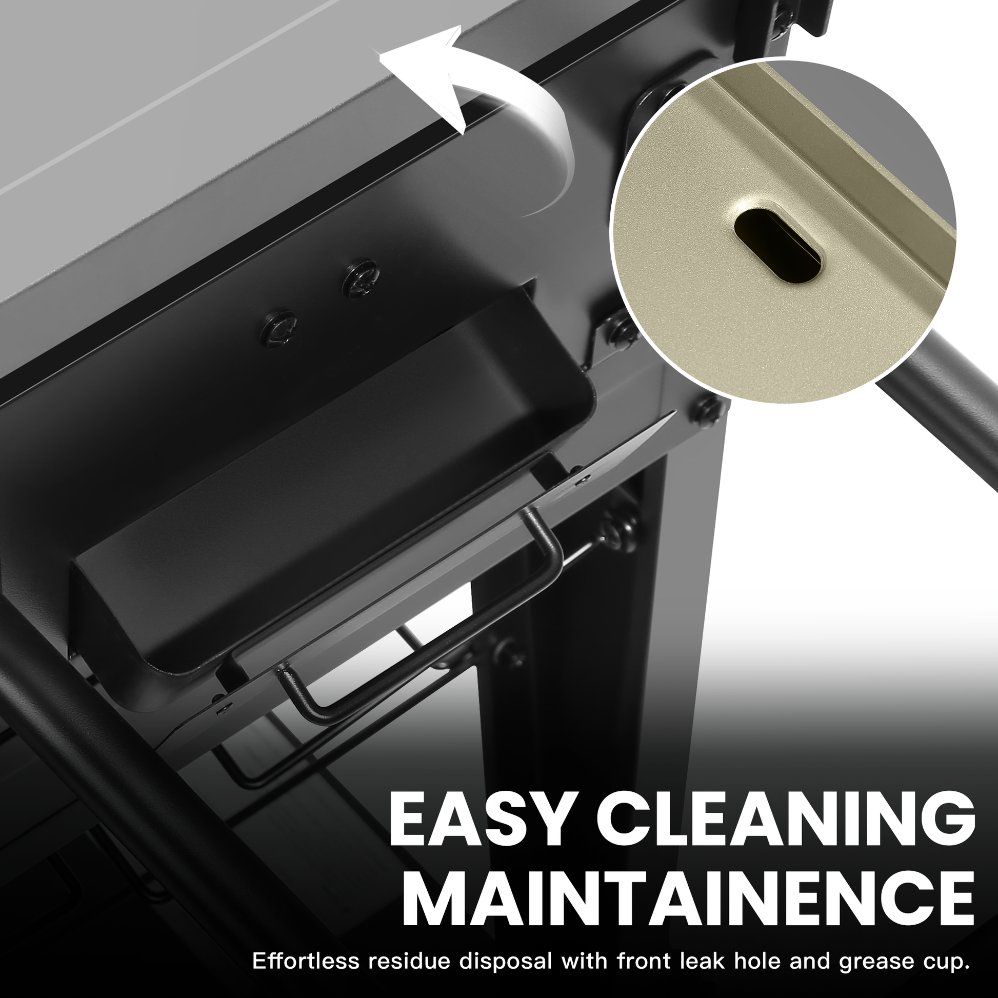 The rear grease management system and removable grease cup make post-cooking cleanup quick and hassle-free.